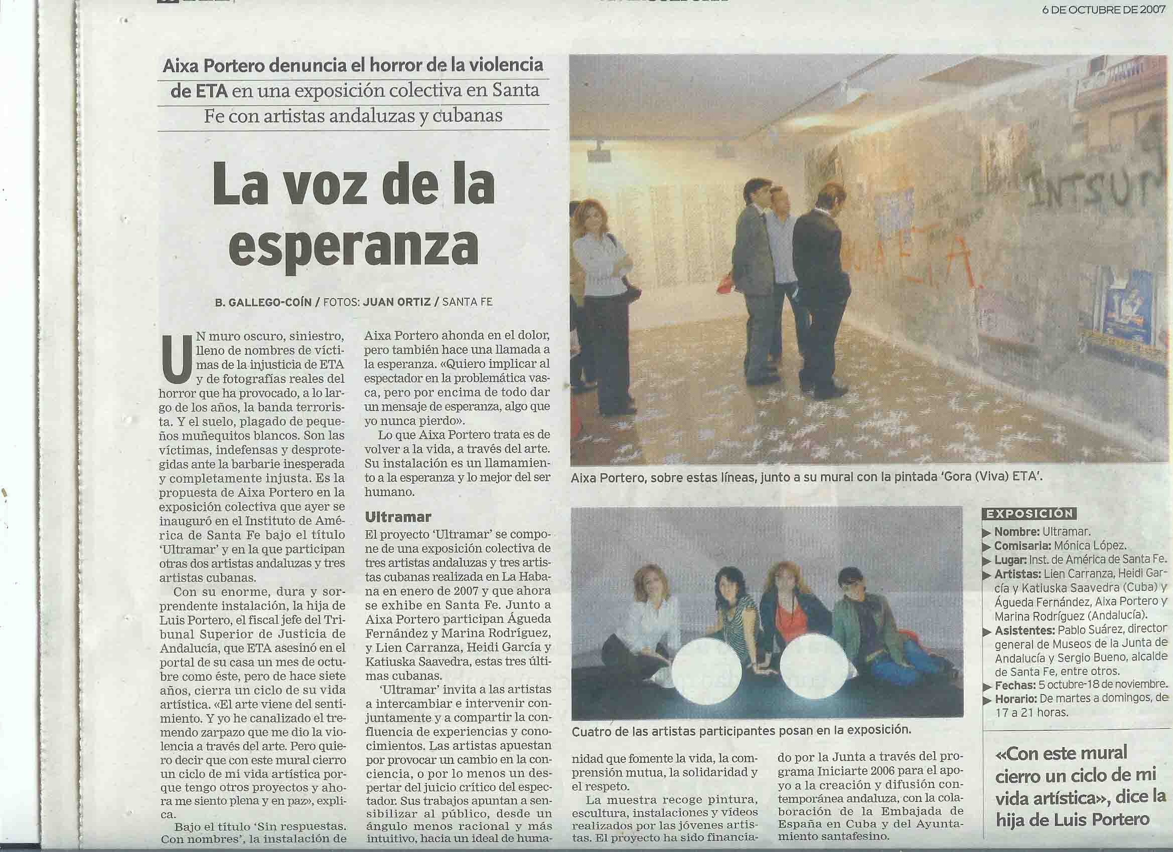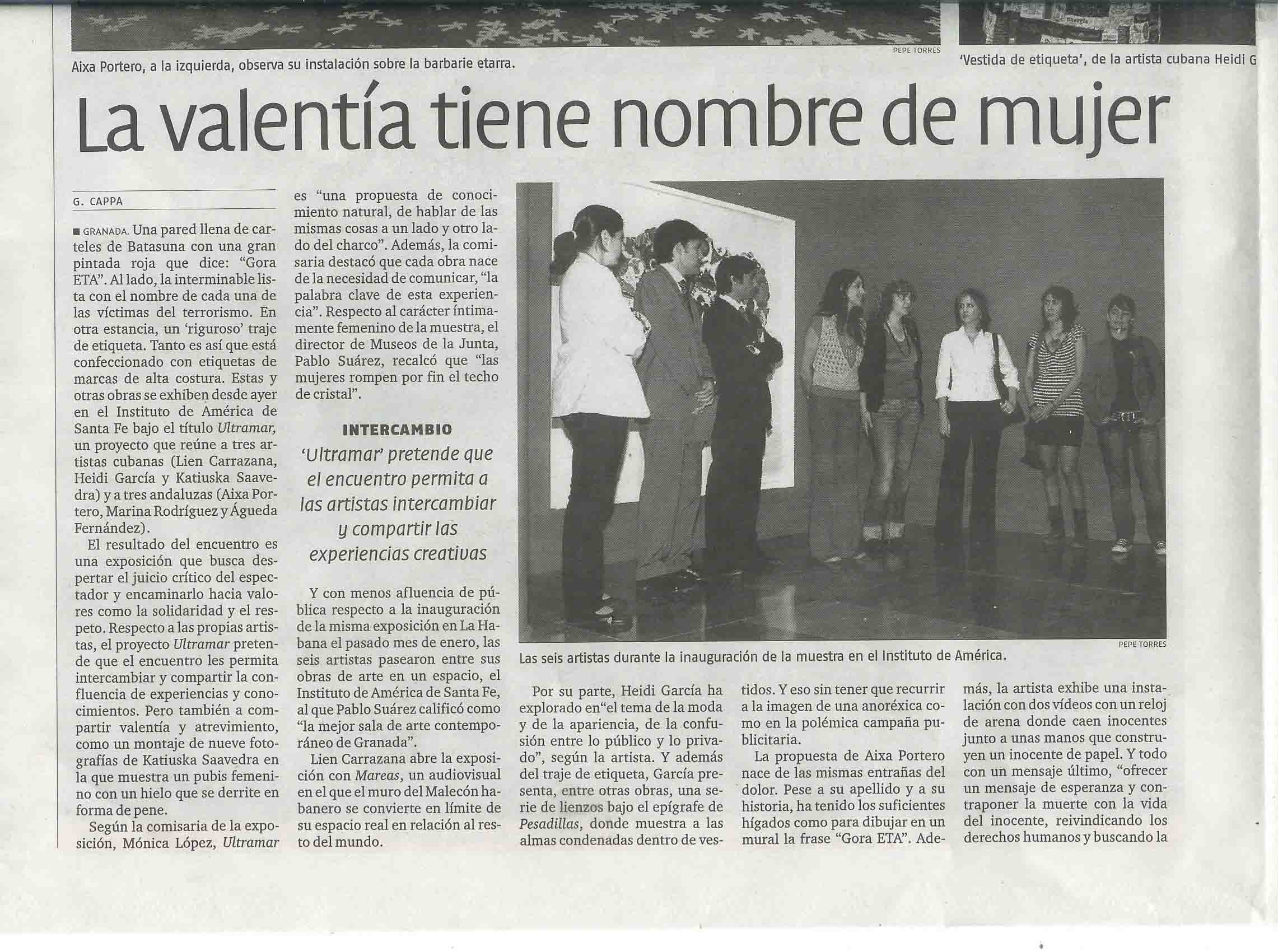 Instituto de América Centro Damián Bayón, Santa Fe, Granada, España, 10-11/2007. Colectiva de artistas andaluzas y cubanas. Aixa Portero, Marina Rodríguez Vargas, Águeda Fernández, Heidi García, Lien Carrazana, Katisuka Saavedra. Financiado por el programa INICIARTE de la Junta de Andalucía, en colaboración con la Embajada de España en Cuba a través de la AECI.